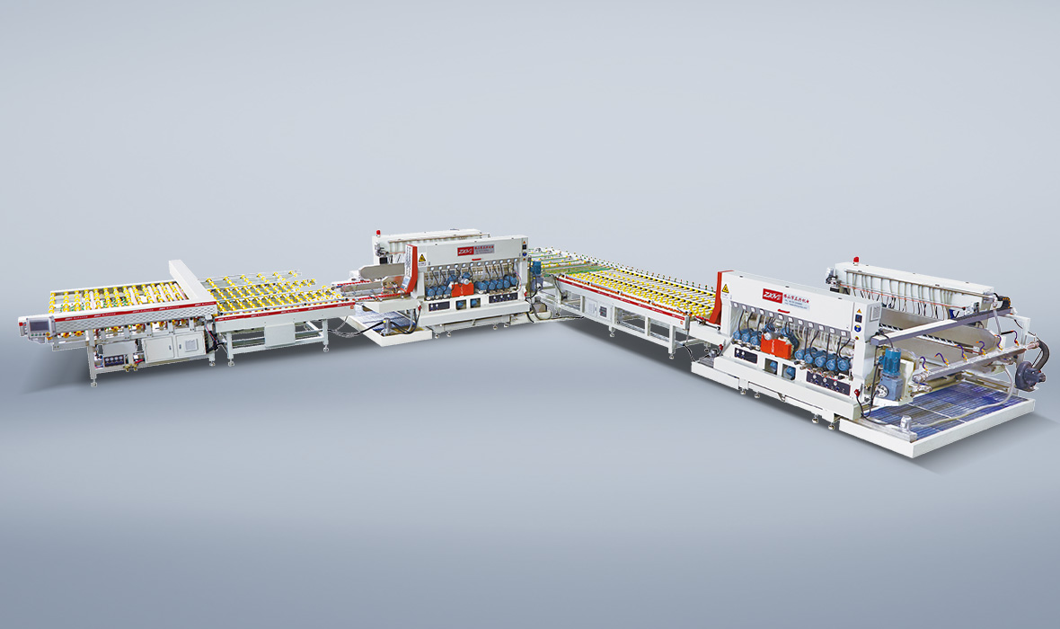 Intelligent high-speed glass edging machine production line, is a rectangular glass edging processing professional equipment; Suitable for building, curtain wall, furniture, home appliance glass processing.